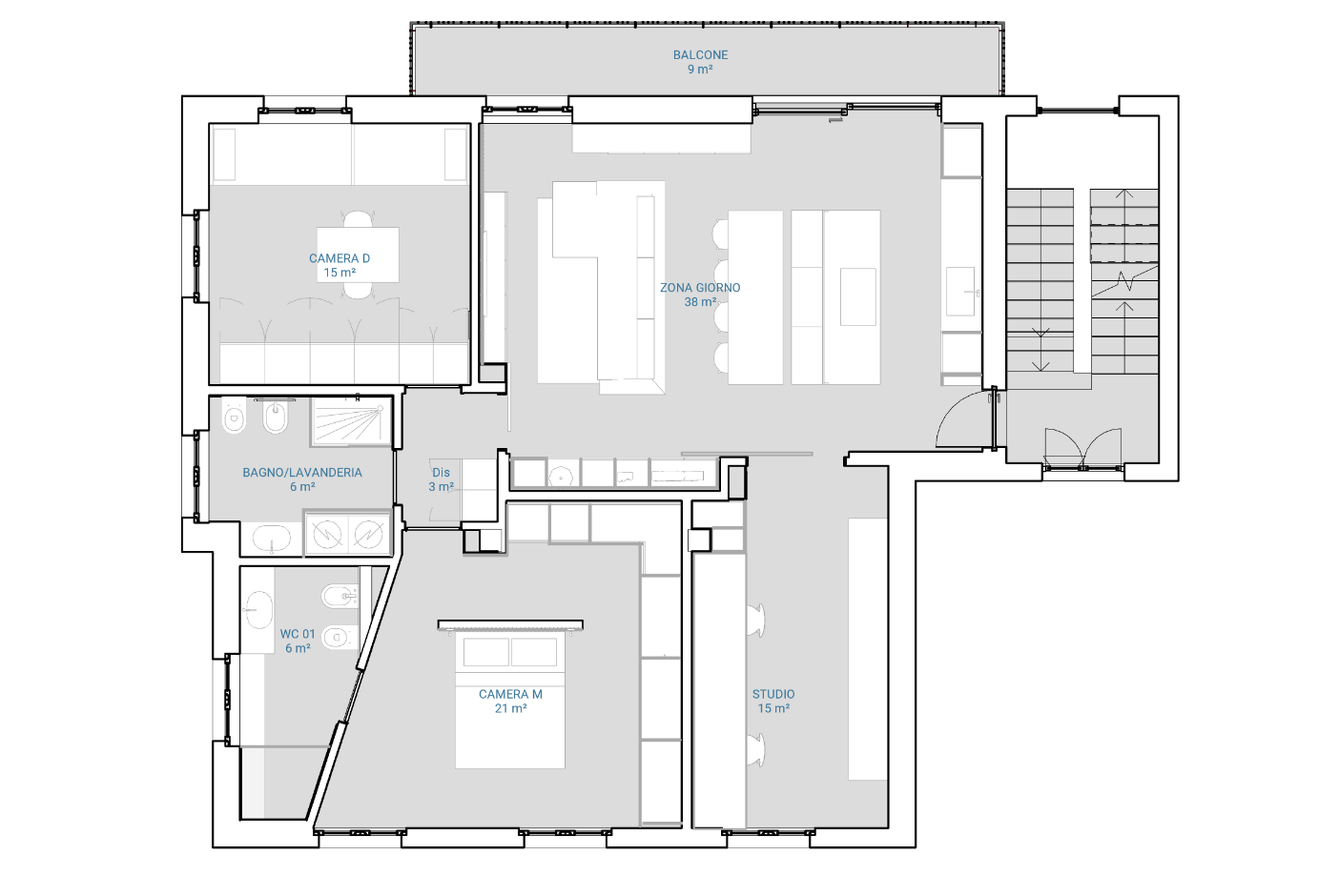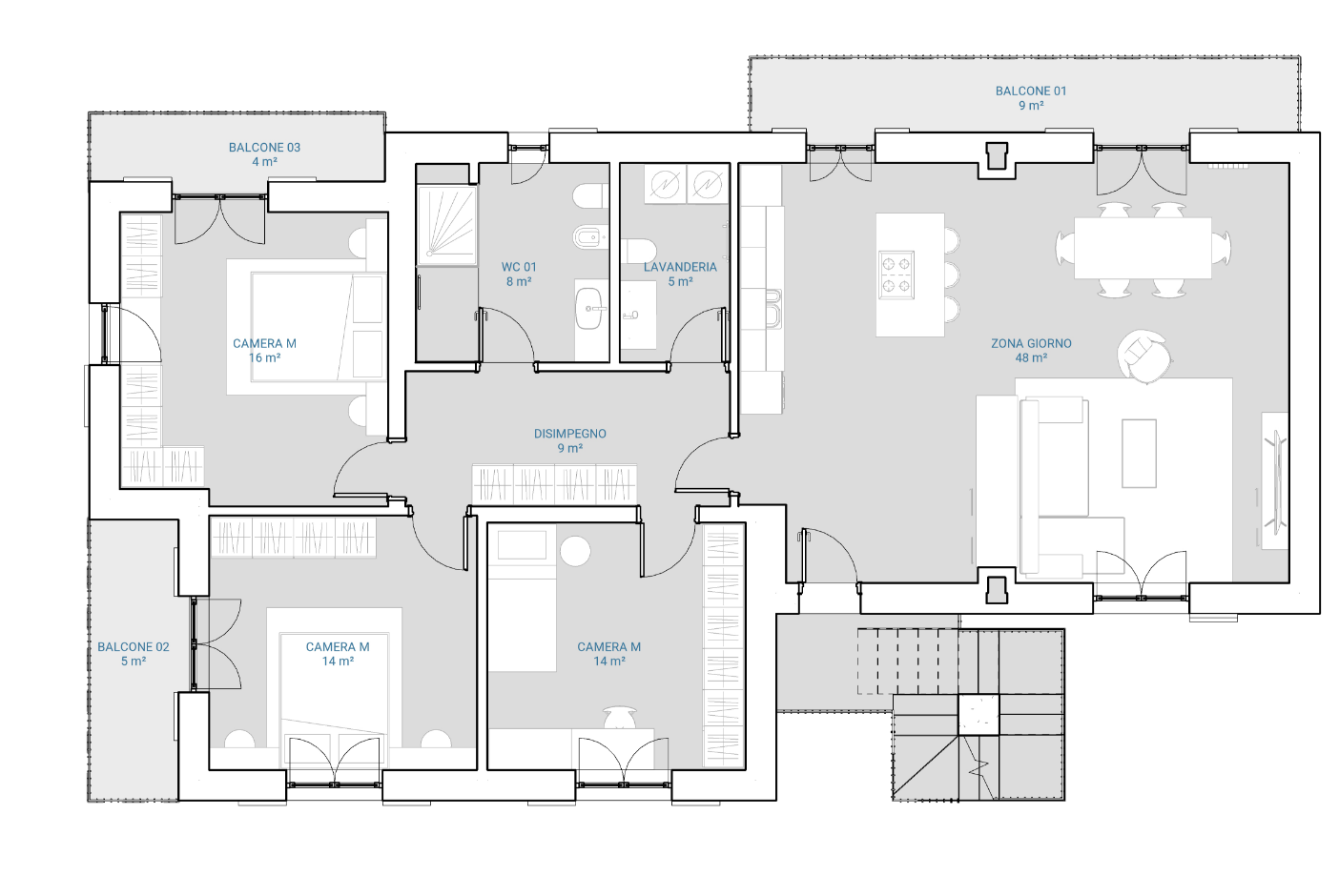Nelle riqualificazioni totali di appartamenti interveniamo con una visione completa, che può includere demolizione e ricostruzione interna per ridefinire spazi e funzioni.